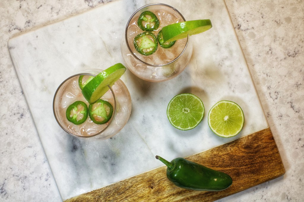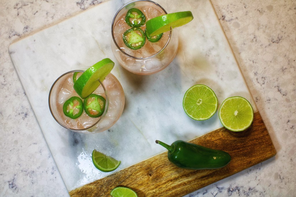 If you have a cocktail shaker add grapefruit juice, juice of lime, jalapeños and agave or simple syrup. If you do not have a cocktail shaker you can add all the ingredients in large glass or small pitcher. After all the ingredients are stirred or shaken very well, pour in your favorite cocktail glasses and add seltzer on top. You can add salt or sugar to the rim of your cocktail glasses if you like. Garnish with lime wedge. Enjoy!