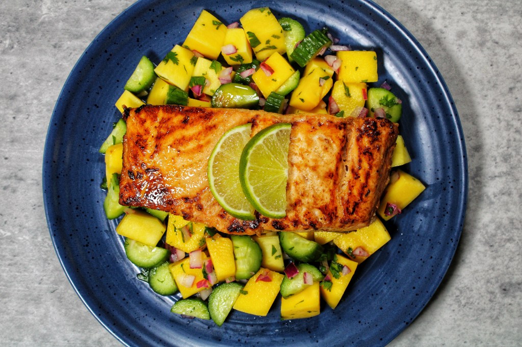 Happy Friday friends! I’m excited to feature more summer recipes here on my blog! This week I’m bringing you an asian style salmon with a delicious & refreshing mango cucumber salad. If there is one type of fish I love, it’s salmon! Aside from all the amazing health benefits of salmon I also love how versatile it is when preparing it.