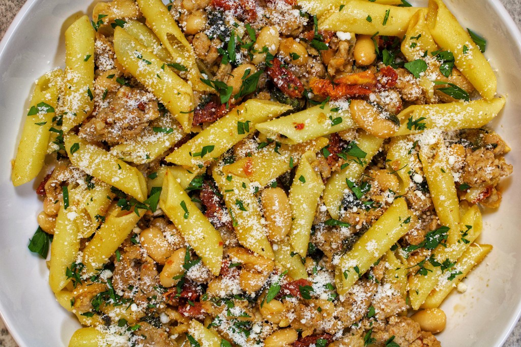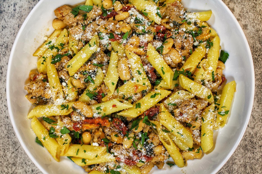 Hello everyone! Happy Friday! I hope everyone is doing well đ I am very excited to share another delicious fall inspired recipe. This recipe is especially for my pasta lovers! I created a hearty Fall Penne Pasta dish. You have the savoriness of the sausage, sweetness from the sun-dried tomatoes, and the nutty flavor from the cannellini beans. This is the perfect pasta dish to make for your family during the week. It is quick and easy to make! Have a great weekend everyone đ
