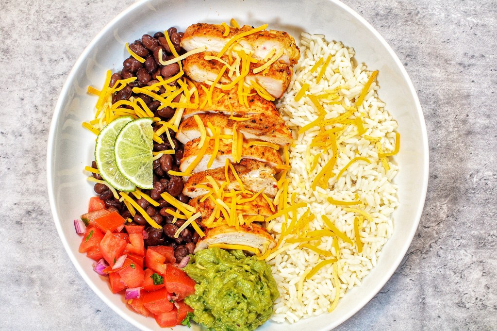 Grilled Chicken Burrito Bowl with a Roasted Jalapeño Crema
