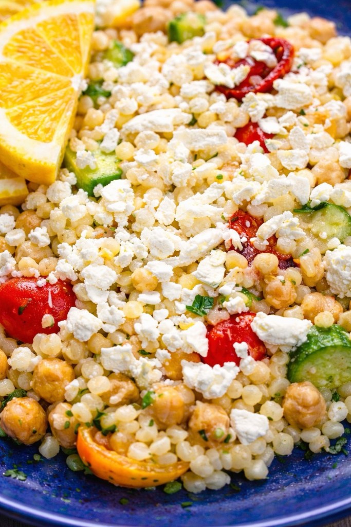 This Mediterranean-inspired couscous salad is packed with vibrant ingredients—tender pearl couscous, crisp cucumbers, juicy tomatoes, chickpeas, and a generous sprinkle of creamy feta. Everything is brought together with fresh herbs and a bright citrus finish that makes every bite feel refreshing and balanced.