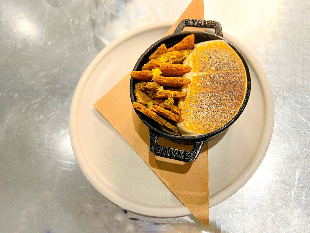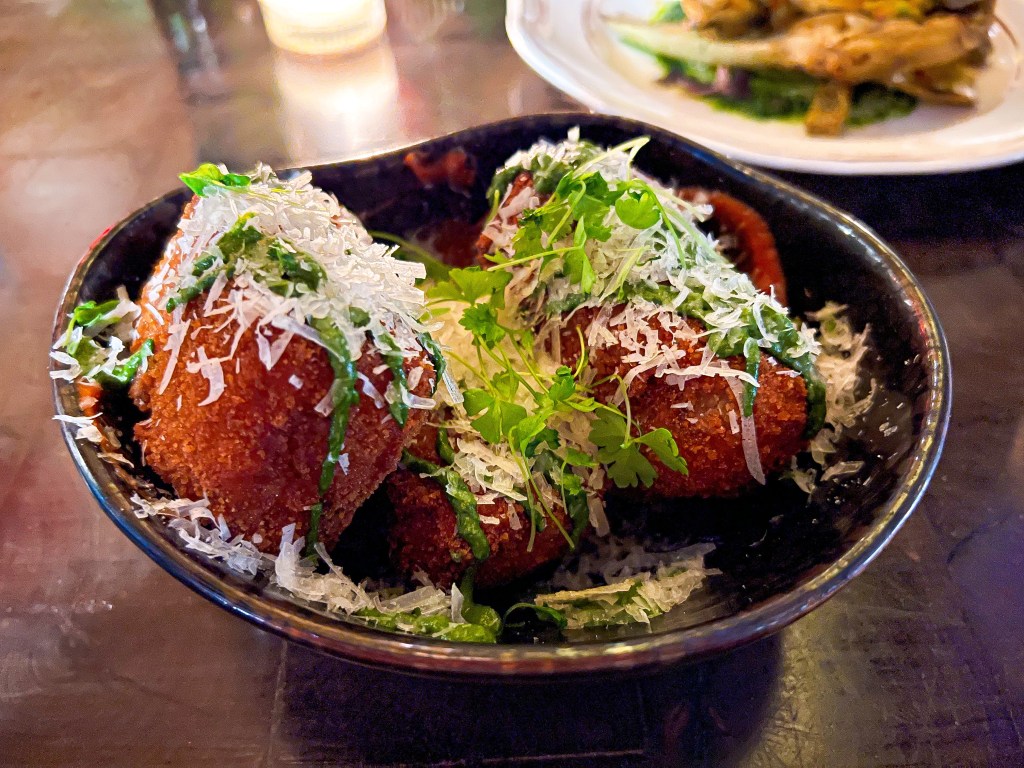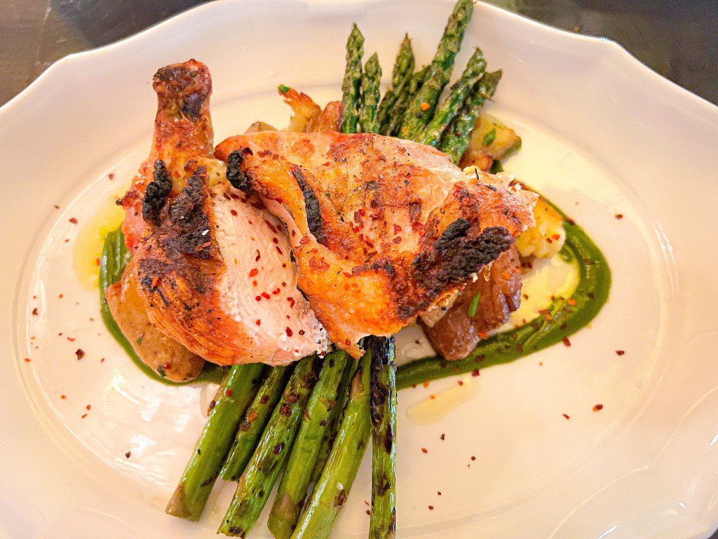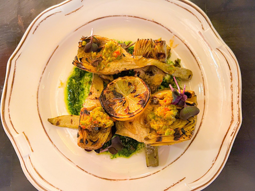 Right: Grilled Artichokes- marinated Roman artichokes, castelvetrano olive tapenade, grilled lemon, extra virgin olive oil