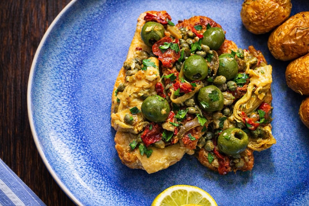 Spicy Sautéed Chicken with Artichokes, Olives, and Capers