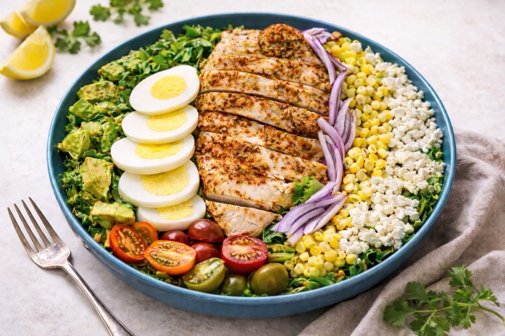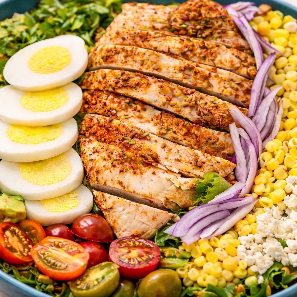 There’s something about a vibrant, ingredient-packed salad that feels both refreshing and satisfying. This Summer Cobb Salad brings together bold flavors, bright colors, and wholesome ingredients in one beautiful bowl. Tender slices of seasoned grilled chicken sit atop a bed of crisp greens, surrounded by creamy avocado, sweet corn, juicy cherry tomatoes, and perfectly cooked eggs.