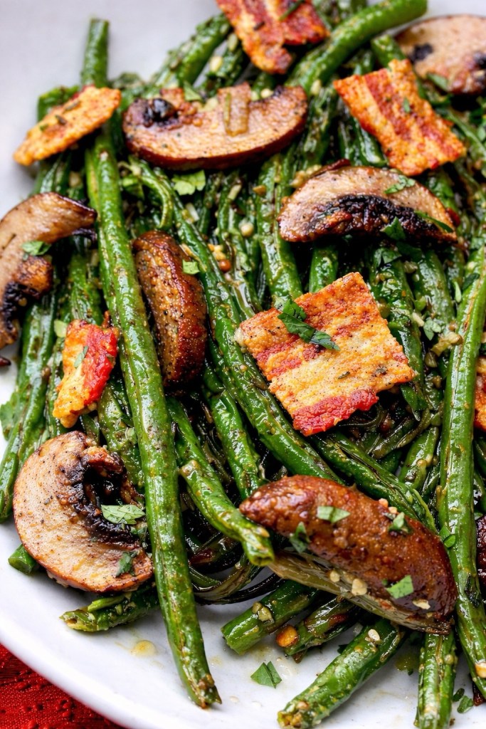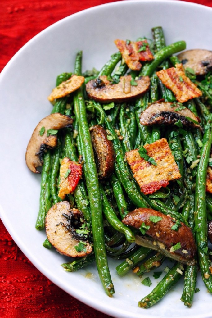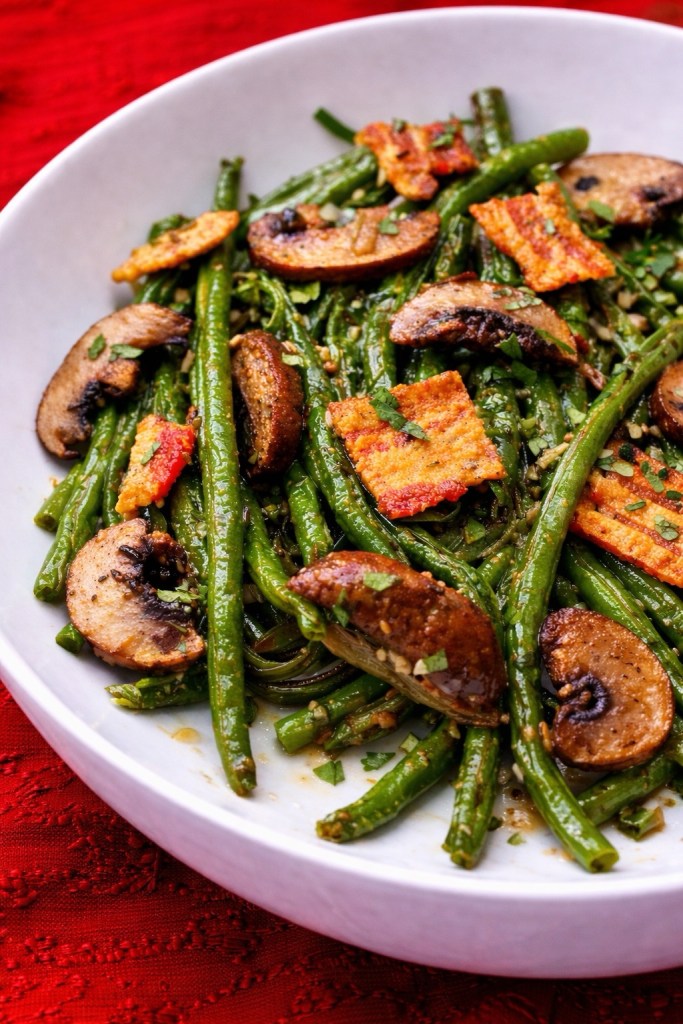 Thanksgiving is all about balance — rich roasts, buttery potatoes, sweet cranberry sauce — and every holiday table needs a vibrant green side to bring it all together. These sautéed green beans with caramelized mushrooms and crispy bacon are exactly that dish.