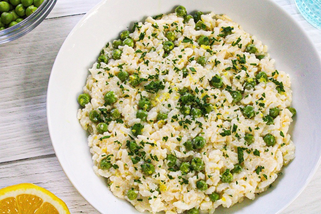 Cook, adding ¼ cup of the broth at a time, until the rice is al dente and loose but not soupy, another 8 to 10 minutes. You may not need all of the broth. Off heat, stir in the remaining 1 tablespoon butter, the peas, lemon zest and juice, and Parmesan. Taste and season with salt and pepper. Serve sprinkled with parsley and additional Parmesan.
