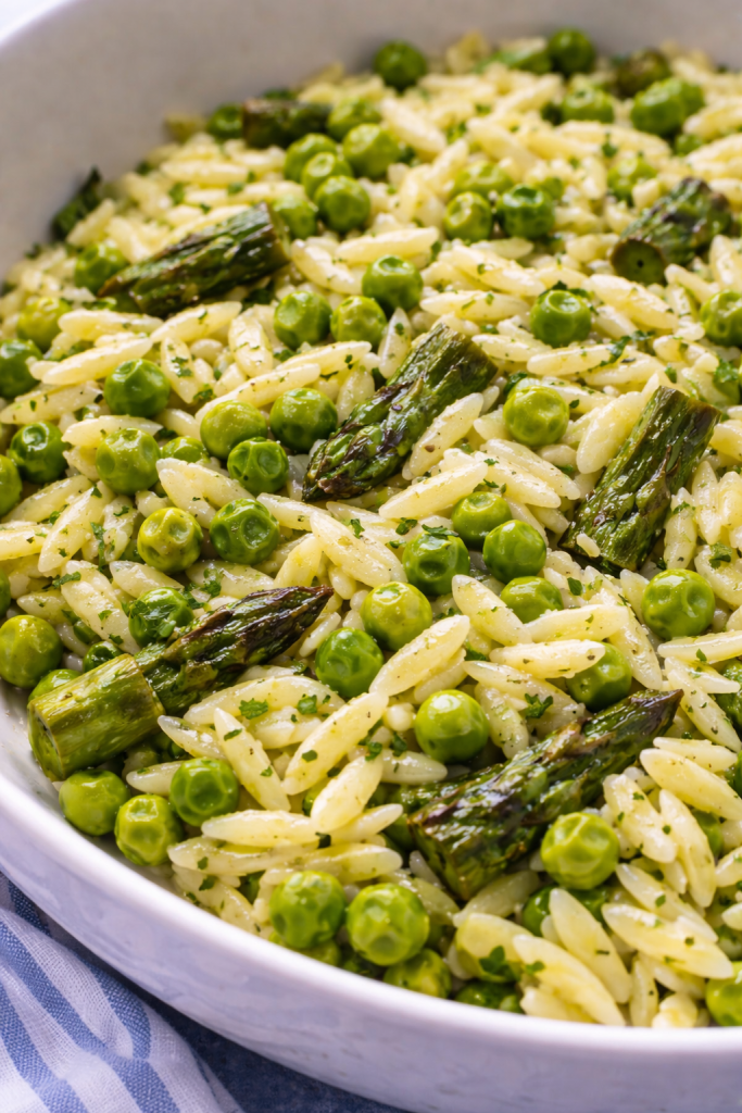 Happy Monday friends! I hope everyone had a great weekend. I wanted to share a new spring pasta salad that I created. Now that the warmer weather is upon us, it means more barbecues, summer get togethers and grilling! My Asparagus and Pea Orzo Salad is the perfect accompaniment to your next barbecue! This salad is packed with so many amazing flavors! The orzo, asparagus, peas, fresh basil, parsley and a crispy shallot dressing that ties this delicious salad together. This orzo salad will be a crowd pleaser at your next gathering! Have a great week!