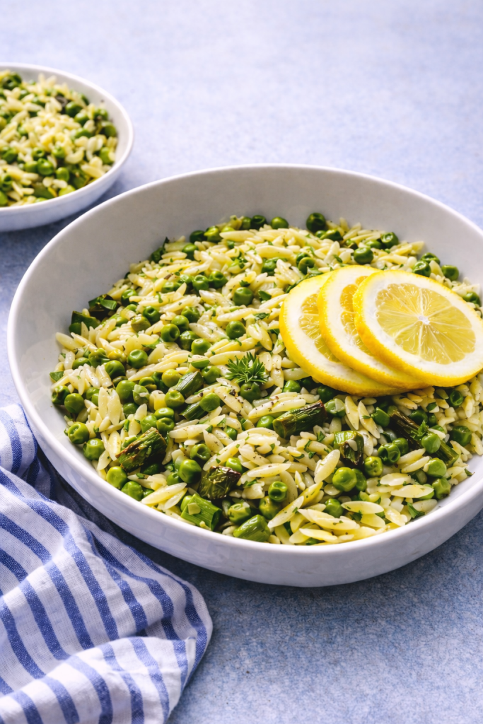 For the Crispy Shallot Vinaigrette, heat the olive oil in a skillet over medium heat. Add the shallots and stir until they’re golden brown, taking care not to burn them. Add the shallots and oil to a jar or bowl and combine with remaining ingredients. Set aside. Cook orzo according to package. Lightly sauté the asparagus in a drizzle of olive oil for 3-4 minutes or until cooked to your liking. Cook peas in the same sauté pan for 3-4 mins. Toss all ingredients, including the dressing, and season to taste. Enjoy!
