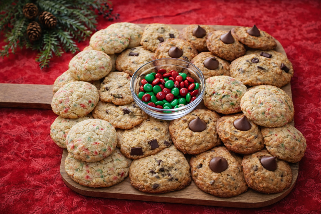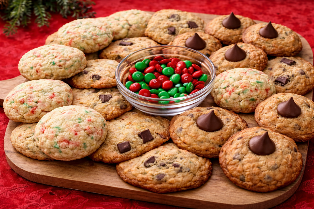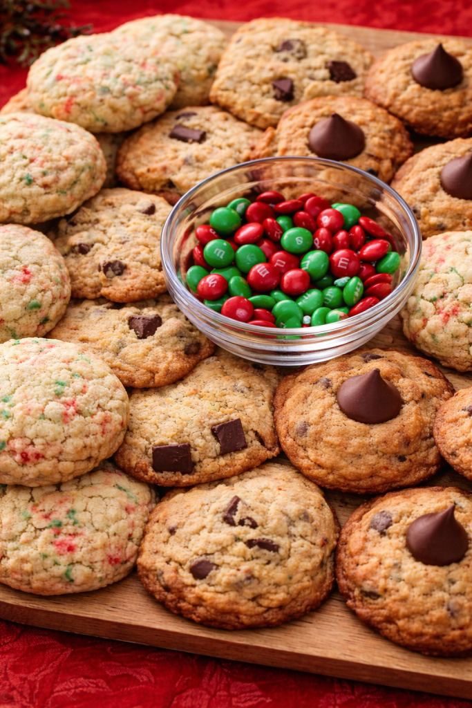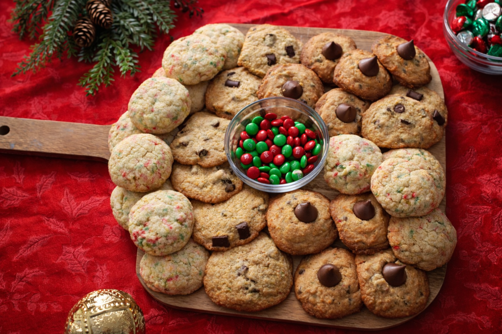 Hi friends! It’s crazy to think we are only one day away from Christmas!! I have a last minute dessert I wanted to share. I put together a fun and festive sweet charcuterie board! This board is easy to put together and will be a huge hit at your holiday gathering! The three different type of cookies I made are, Peanut Butter Blossoms, Holiday Edition Sugar Cookies and Brown Butter Chocolate Chip Cookies. These cookies were a lot of fun to make! If you have a cookie swap party, Christmas party or any type of gathering, this is the perfect dessert!