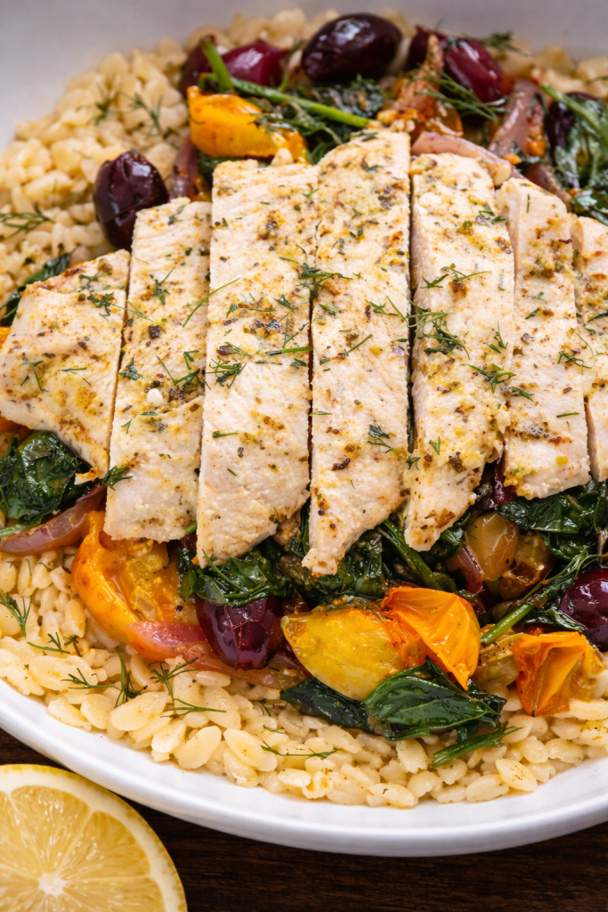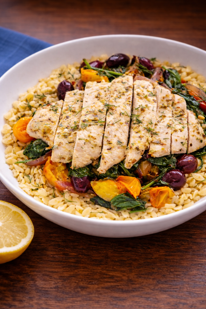 Mediterranean Chicken Orzo Bowl with Lemon and Herbs