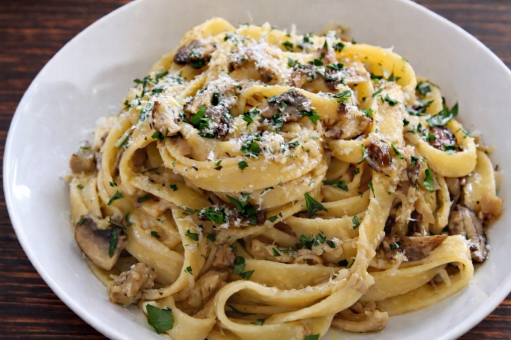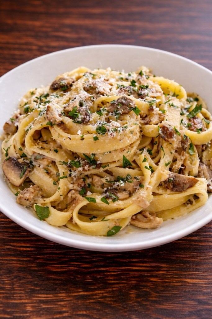 Silky ribbons of pasta are tossed with wild mushrooms, a touch of butter and olive oil, parmesan, and finished with truffle salt for a subtle, luxurious depth. It’s elegant without being fussy, and perfect for a cozy date night in.